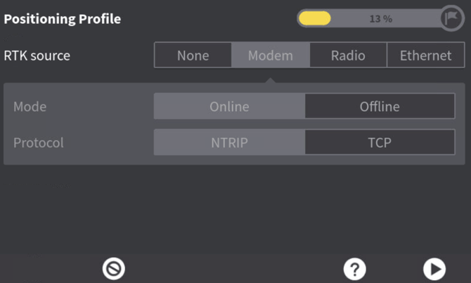 Ensure screen and GNSS receiver are powered on. The sim card is located in the receiver and is active. The following images are taken using MC1 Version 7.1.0, some menus make look different depending on version, however principles remain the same.